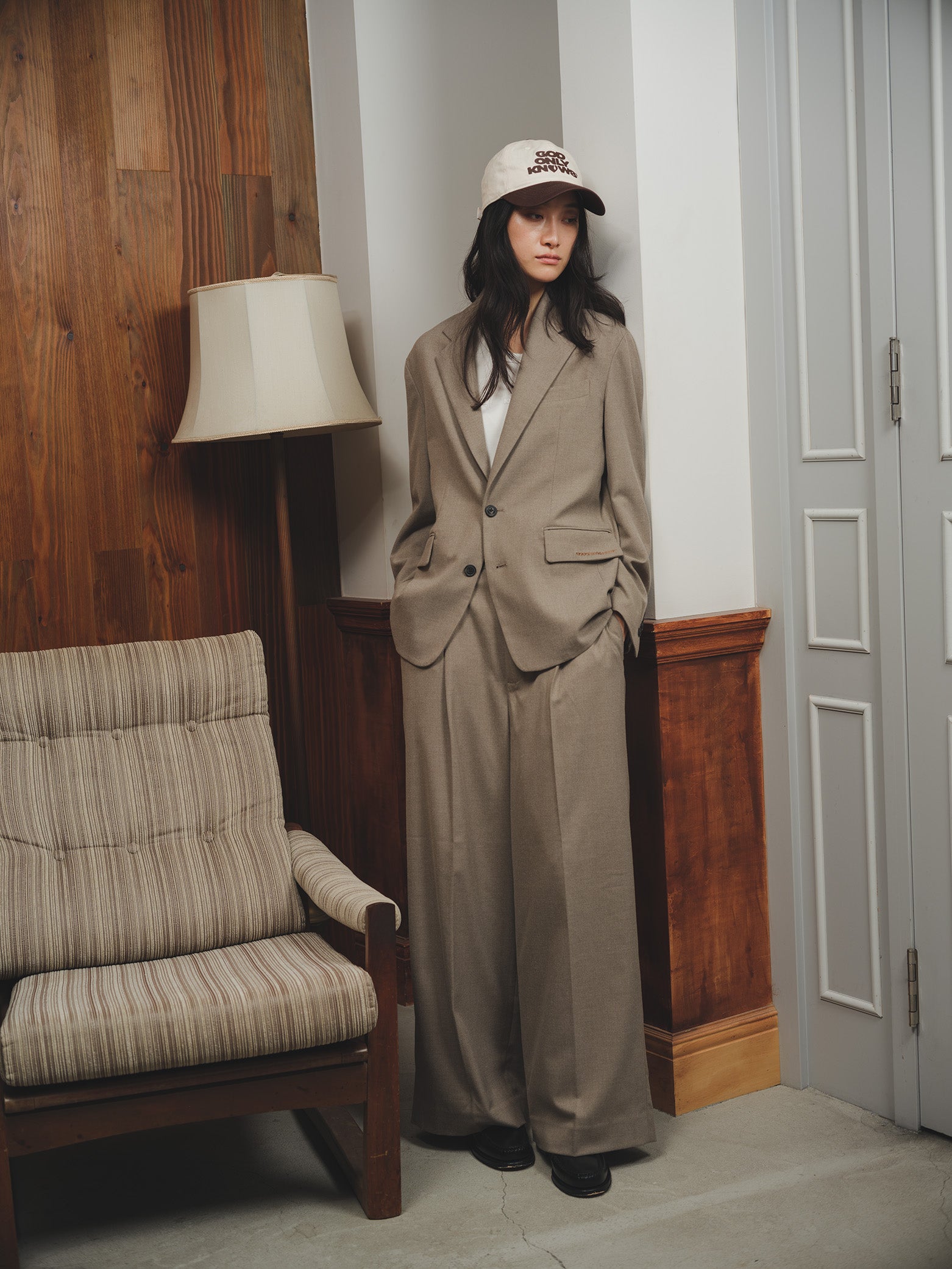 WOOL TAILORED JACKETとWOOL WIDE TUCK SLACKSの2点セット。