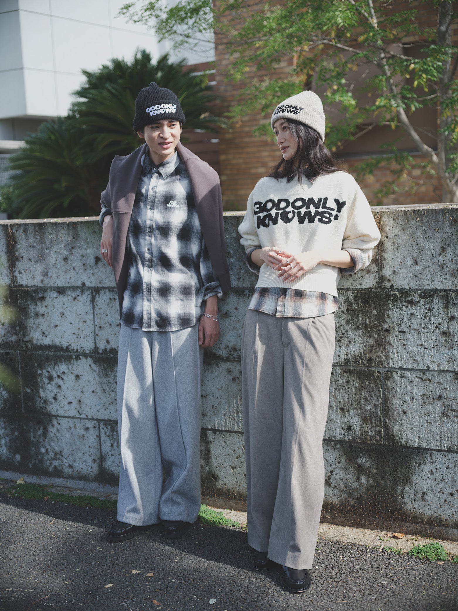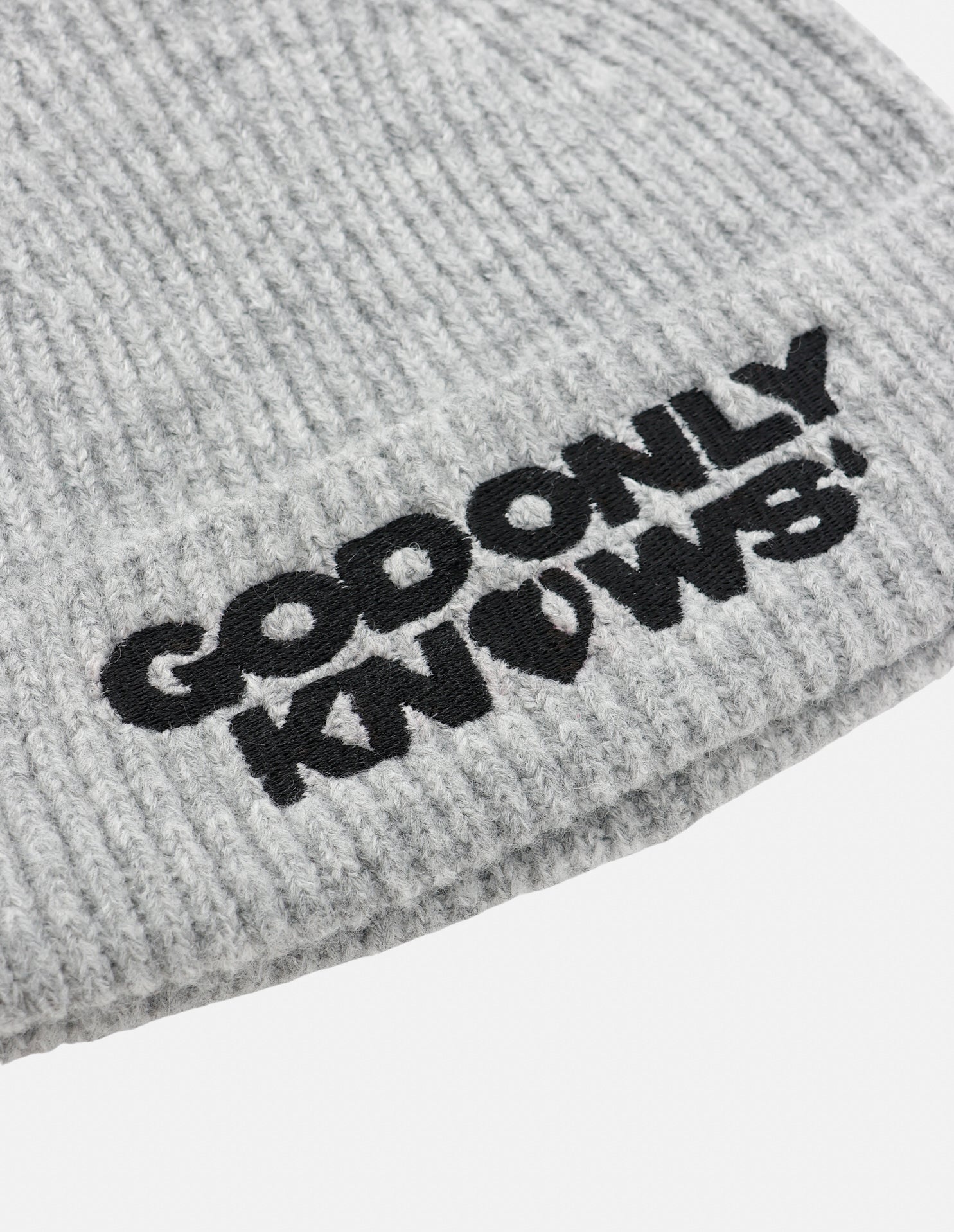ミニマルなデザインにGOD ONLY KNOWSのロゴ刺繍を施したリブビーニー。