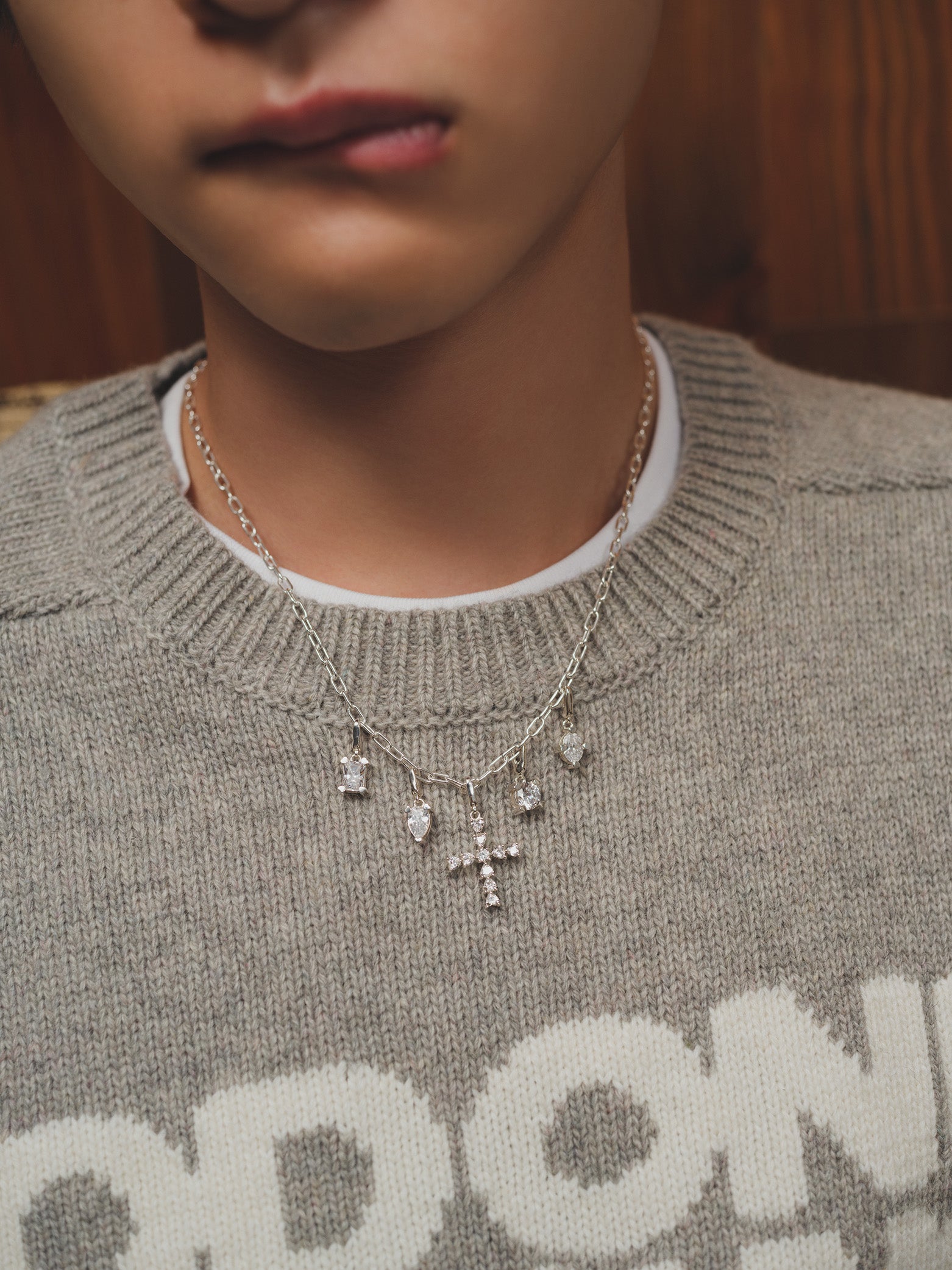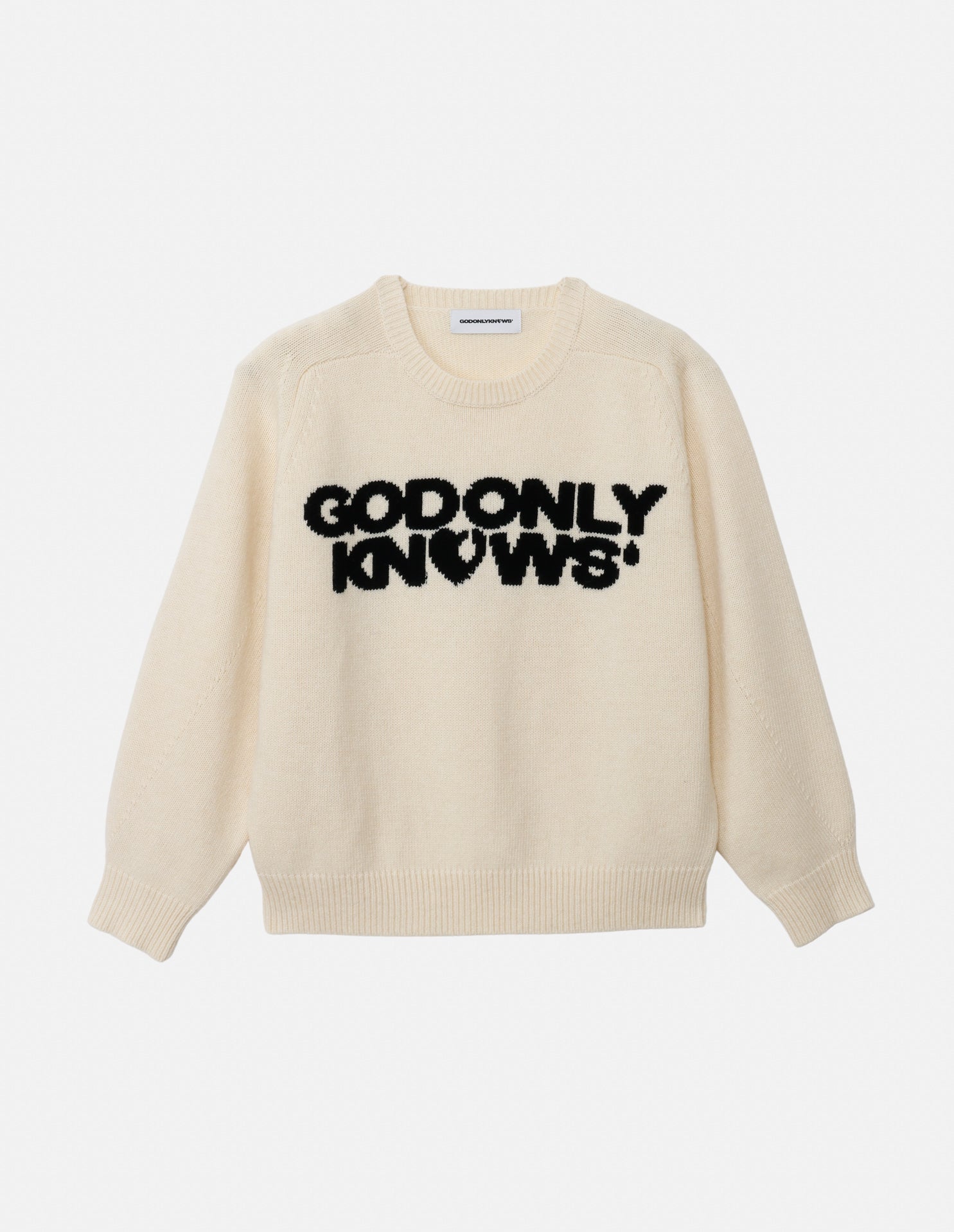 どんなボトムとも相性が良くスタイリングの幅を広げてくれる万能な一着です。フロントには大胆にGOD ONLY KNOWSロゴを編み込んだ存在感のある1枚。
