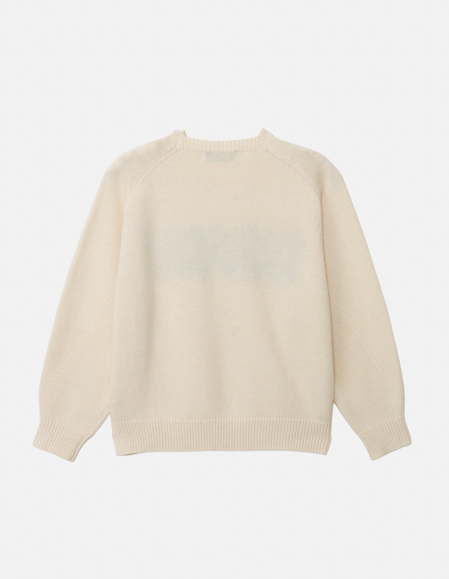 リラックス感のあるワイドシルエットながら、立体的な編み地を用いることで袖や肩まわりがすっきりと美しく見える仕上がりに。