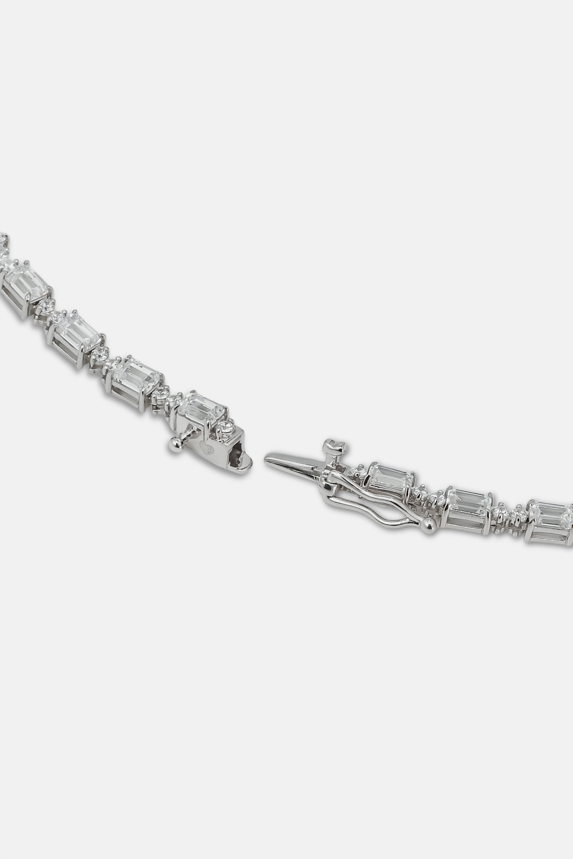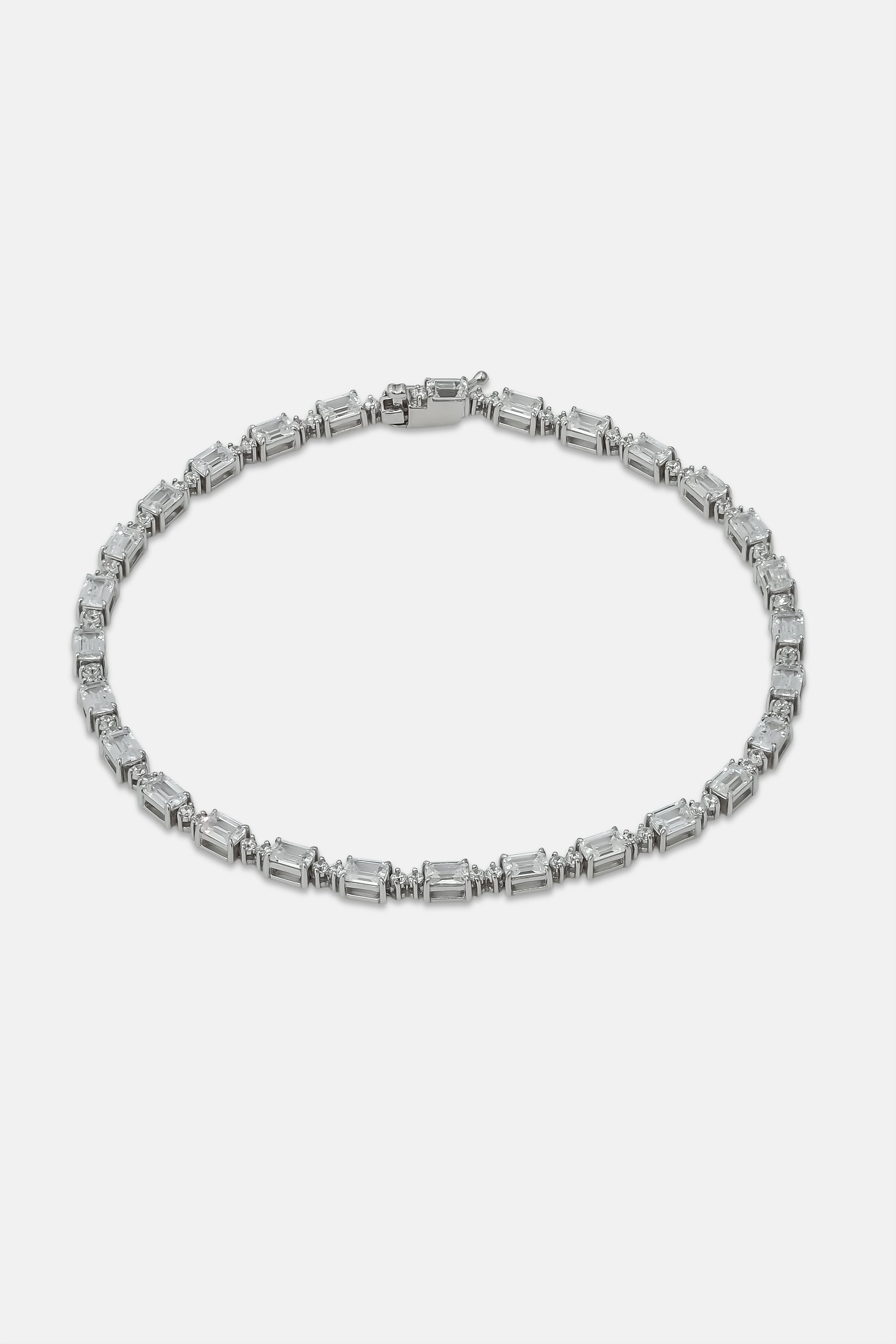 エメラルドカットとラウンドカットのキュービックジルコニアが連なったテニスブレスレット。