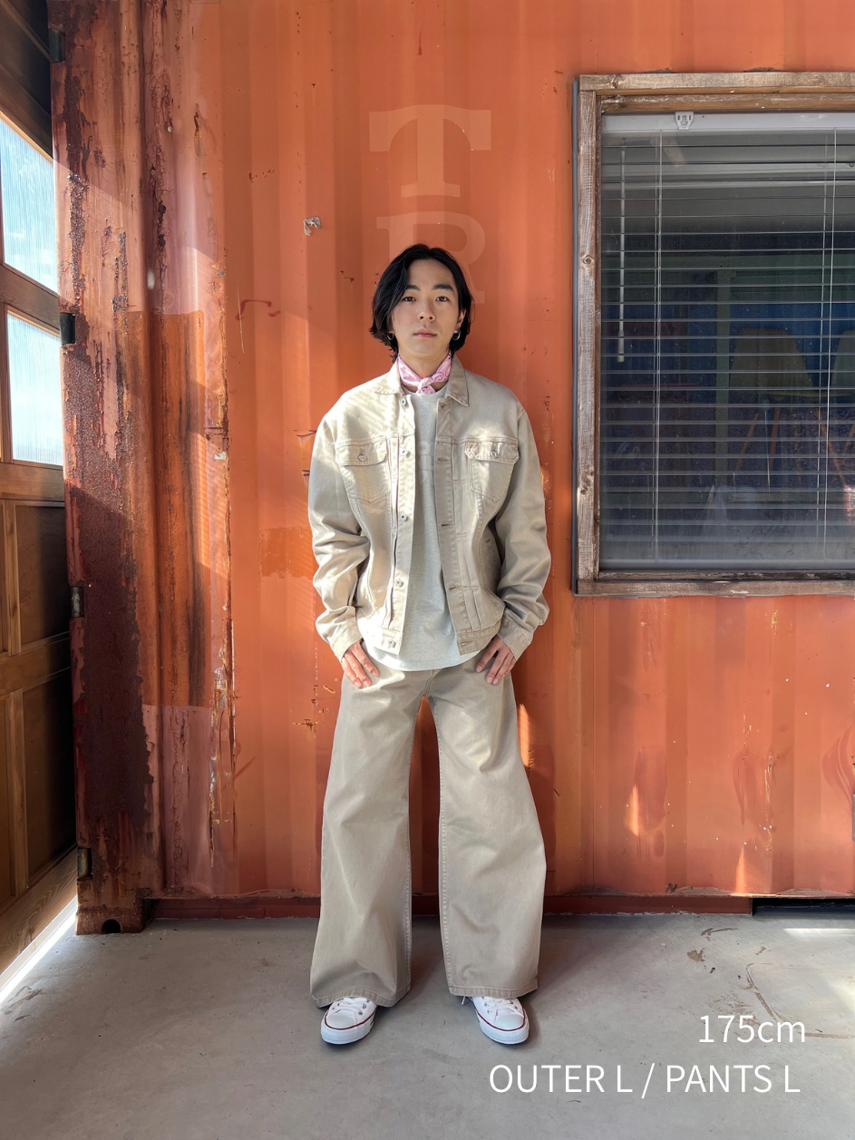 SAND BEIGEは硫化染め×ケミカルウォッシュ加工で使い込まれた風合いを演出。