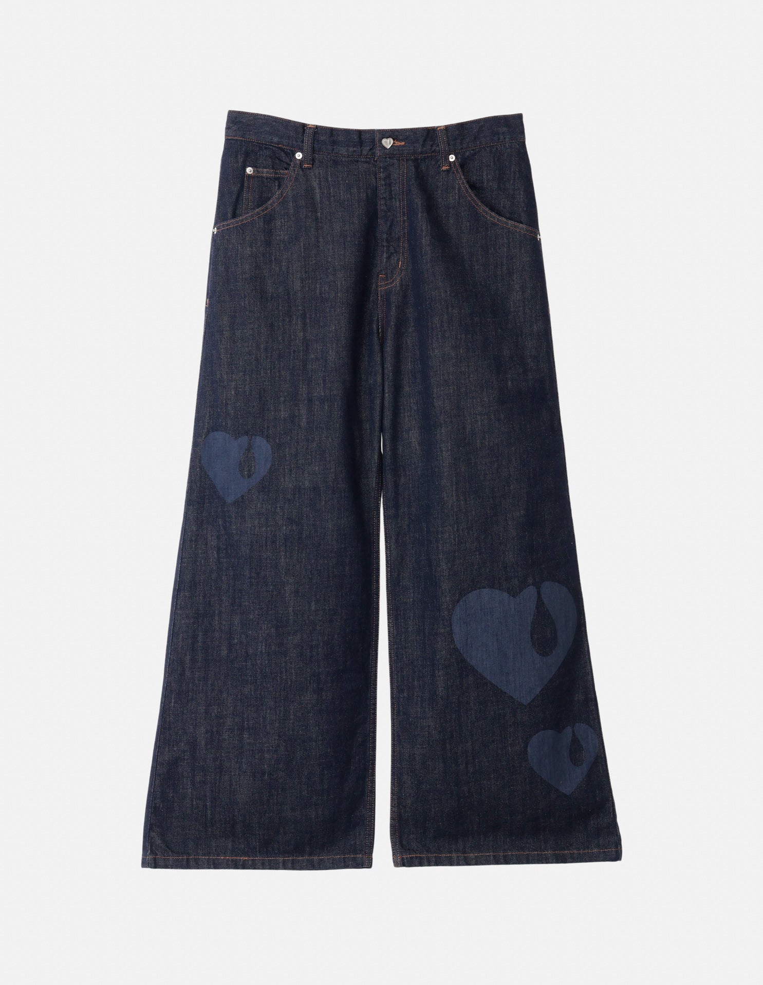アイコニックなTEAR HEARTをプリントしたワイドストレートデニムパンツ。
